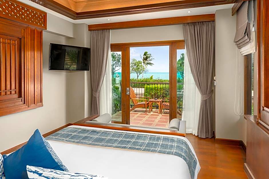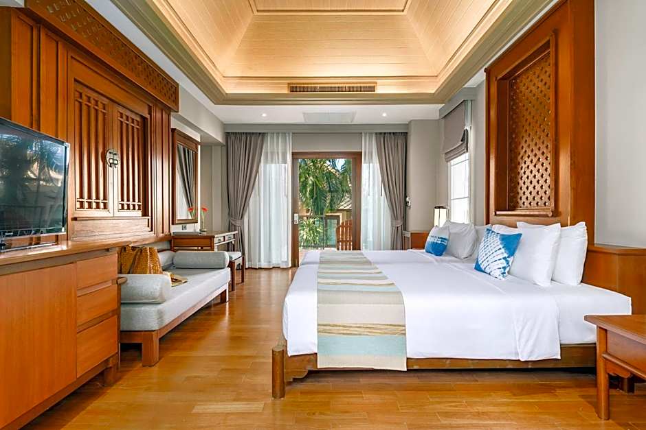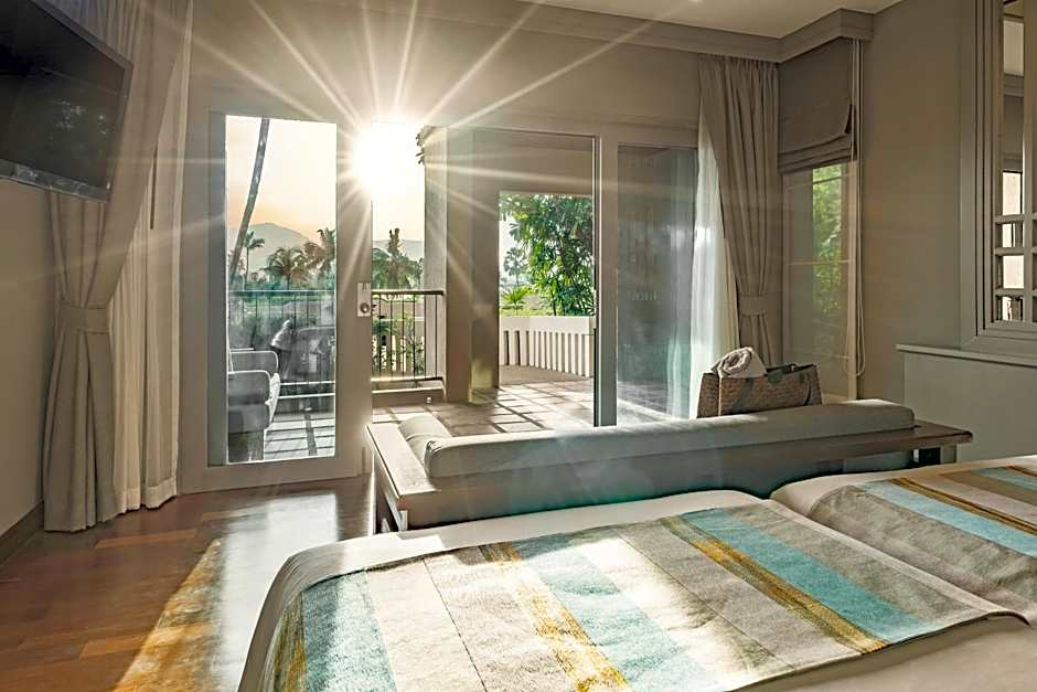 Garden villas feature a private outdoor balcony with a tropical garden view.